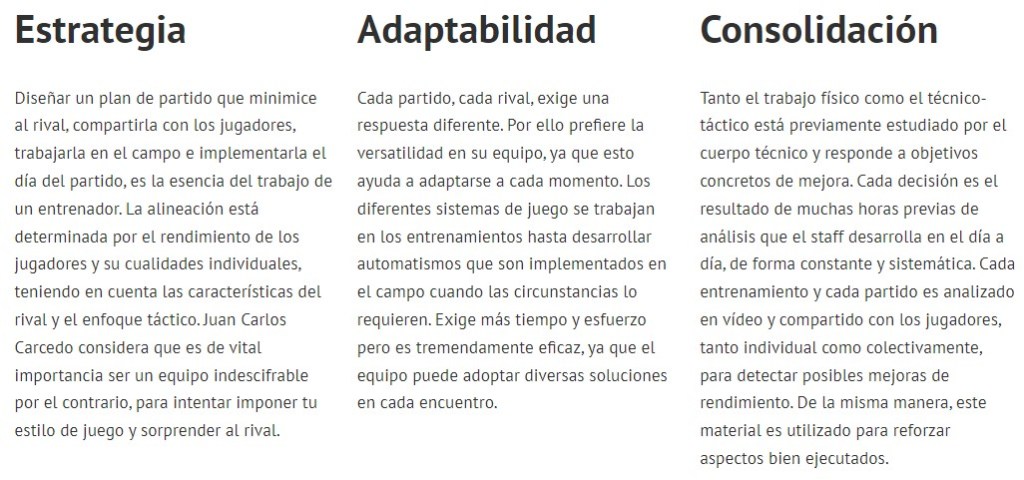 El técnico resume en la siguiente frase su filosofía de trabajo: «En la gestión del equipo he aprendido que el éxito sólo es alcanzable con una exigente disciplina de trabajo».