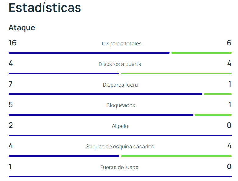 El resultado fue injusto ya que el conjunto entrenado por Iván Martínez dispuso de las ocasiones más claras y dominó gran parte de las facetas del juego como se puede observar en las siguientes estadísticas del partido: