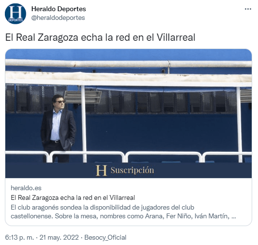 El Real Zaragoza sondea la disponibilidad de jugadores del Villarreal con nueve nombres sobre la mesa, Juan Carlos Arana, Fer Niño, Iván Martín, Alex Baena, Haissem Hassan, Nicolás Jackson, Sergio Lozano, Álex Millán y Adrián de la Fuente.