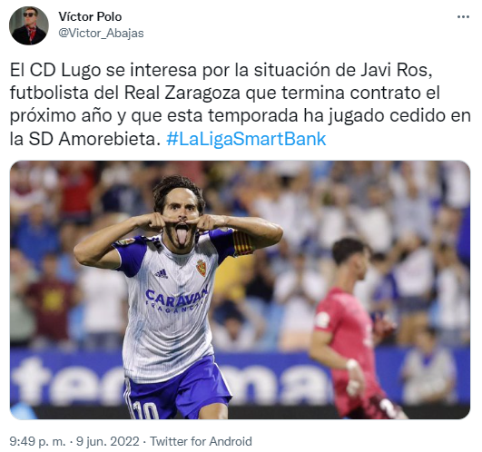 Al interés ya publicado del CD Lugo en Javi Ros, Gonzalo Hidalgo apunta un posible nuevo destino para el navarro, el Racing de Santander.
