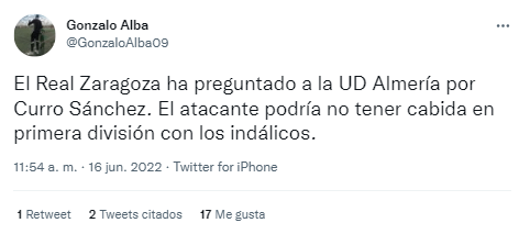 El extremo del Almería José Carlos Lazo es una opción para reforzar el ataque del Real Zaragoza. El jugador ha disputado esta temporada 33 partidos donde ha marcado 5 goles y ha dado 2 asistencias.