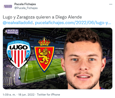 Miguel Torrecilla estaría interesado en la contratación del defensa central Diego Alende al que conoce tras su paso por el Celta de Vigo. El jugador pertenece al Real Valladolid y las dos últimas temporadas ha jugado cedido en el CD Lugo donde ha disputado un total de 66 encuentros.